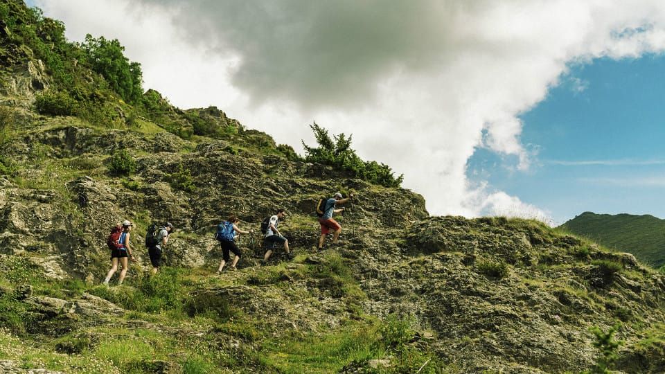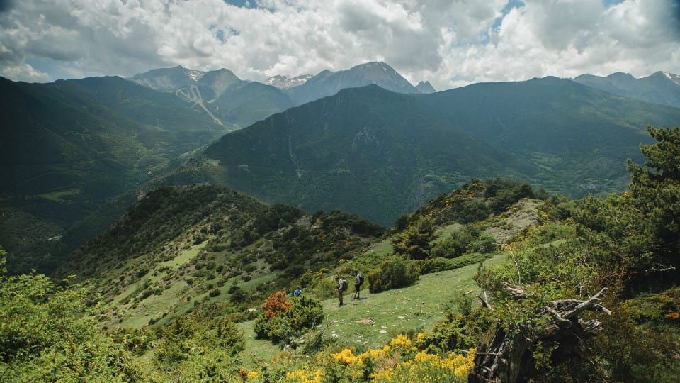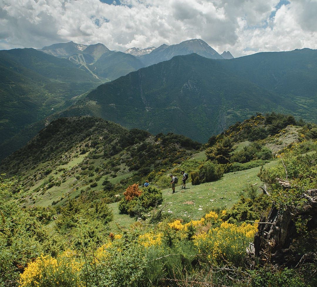 Aquesta etapa torna a començar forta: fer 1.000 m positius de desnivell en només 5 km. L’objectiu és arribar al coll de lo Calbo i entrar a la vall d’Àneu, la tercera de les grans valls del Pallars. Tenim unes vistes esplèndides i tracem la línia imaginària que faran els nostres passos. Tot el que hem pujat ho hem de baixar i arribem a Dorve, un petit nucli amb una vintena de cases. La ruta encara segueix fins a la Guingueta i Espot resseguint corriols i alguna pista de terra.